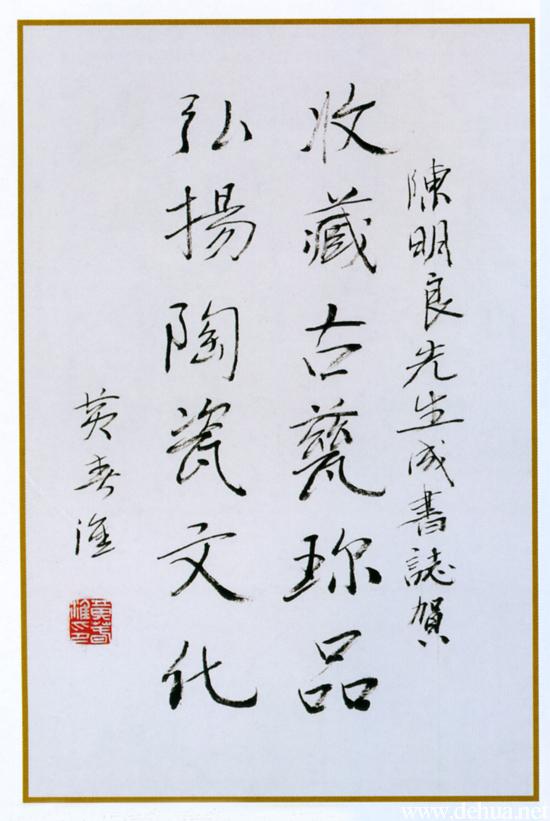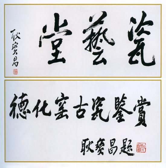 ▲国家文物鉴定委员会常务委员耿宝昌为本书与“瓷艺堂”题字