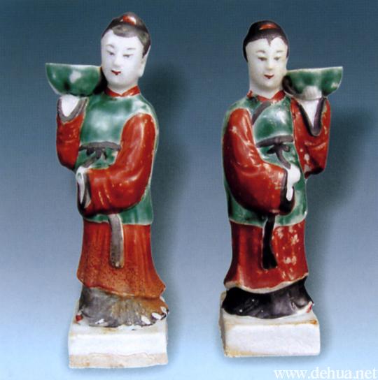 ▲上明末 粉彩人物烛台(对)(陈朝东藏) 高14.5厘米