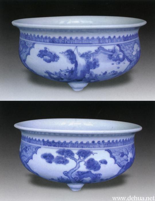 ▲清·雍正 青花锦地开光山水人物纹炉(陈朝东藏)