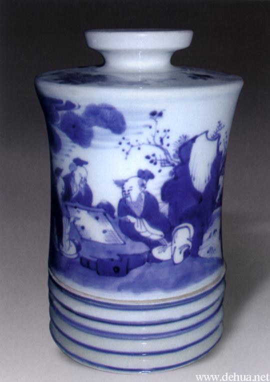 ▲清早期 青花对弈纹油灯(刘以溪藏) 高19.5厘米,口径11.5厘米