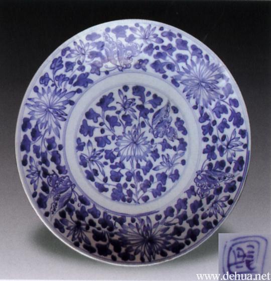 ▲清中期 青花花卉纹盘(施政强藏) 口径25厘米