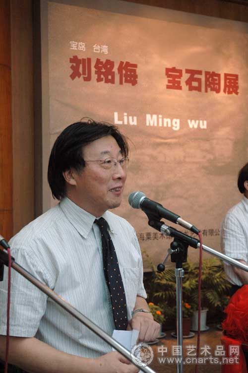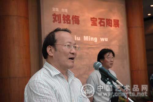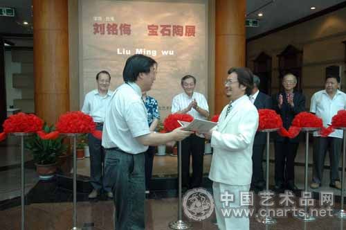 中国艺术品网2007年8月22日报道:台湾艺术家刘铭侮-宝石陶展今在刘海粟美术馆开幕。在开幕式上台湾艺术家刘铭侮向刘海粟美术馆捐赠作品。
