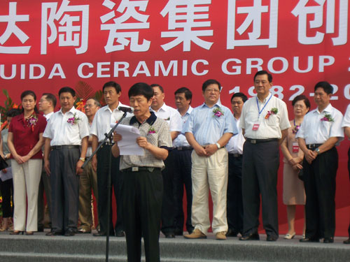 庆典仪式上,惠达集团执行总经理王彦庆首先致欢迎辞,国内经销商代表、国外客商代表、董事长王惠文、唐山市市长张国栋、丰南区委书记刘建立、中国建材协会党委书记孙向远等领导发表了热情洋溢的讲话,河北建材工业协会发来了贺电,对惠达集团取得的成绩表示祝贺,对惠达陶瓷集团的明天寄予厚望。