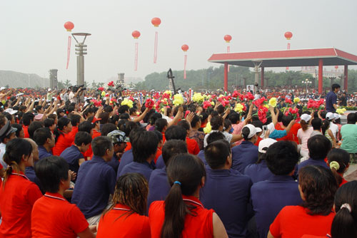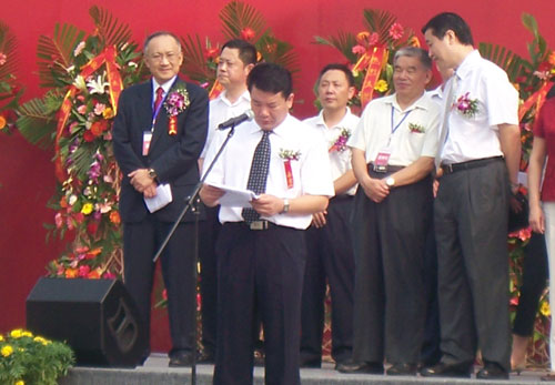 上午8:30分,隆重的庆典仪式正式开始。出席庆典仪式的有国务院参事室副主任蒋明麟,中国建筑材料联合会党委书记、常务副会长孙向远,河北省人大常委会副主任白润璋,全国工商联副主席、原国家工商行政管理总局副局长甘国屏,河北省工商局副局长王国忠,唐山市委副书记、市长张国栋,市委常委、秘书长陈学军,副市长王久宗,市人大主任钟清杰,市政协主席张耀华,唐山市工商局、海关、商检、外贸局领导,中国五矿化工商会领导,丰南区四大班子领导以及丰南区各局、各乡镇、大企业代表,以及来自全国各地的经销商代表,来自美国、俄罗斯、韩国、孟加位国等国外客商代表,惠达员工代表等共计6000人参加了庆典。