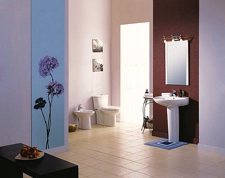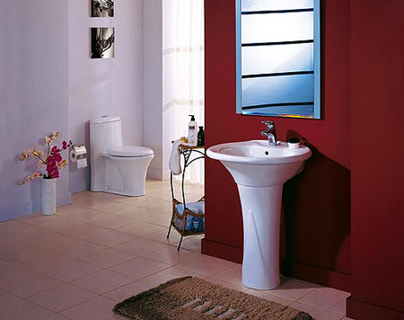 我们终於要摆脱卫浴设备「非白不可」的定律了,虽然白、怠、黑、灰四色仍是极简的重要元素,但是在摆饰及局部装潢方面,则不妨大胆的使用橘、红、可可等充满阿哥哥风味的鲜艳颜色吧!