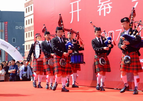 4月18日上午,和风丽日。30多名来自德国、意大利等国家的欧洲客商走出华夏新中源大酒店,结伴朝佛山国际会展中心走去。此时,佛山国际会展中心已是彩球飘扬,雄狮劲舞。第九届佛山(国际)陶瓷博览交易会开幕式会场商客云集,德国拓欧集团、佛亚展览(香港)有限公司总裁托马斯、中国陶瓷工业协会理事长杨自鹏、佛山市副市长李子甫、中国建筑卫生陶瓷协会会长丁卫东、禅城区副区长梁炳军、佛山市陶瓷行业协会秘书长尹虹等有关领导及叶德林、何新明、黄建平、张孟友等一批中国建陶巨头掌门人于主席台就坐。随着苏格兰风情乐队的乐器演奏,第九届佛山(国际)陶瓷博览交易会在众人的期盼中拉开了序幕。