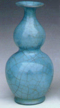 宋代 汝窑天青釉葫芦瓶 高14公分
