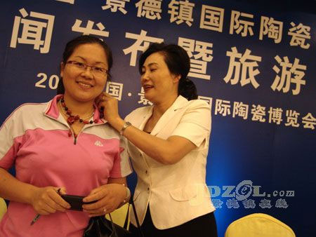 《第一财经报》女记者任绍敏会后半信半疑来到主席台边,想让马玉玲给她看下瓷项链。马玉玲听后当即便把瓷项链取下,让任绍敏仔细看看。看到女记者对瓷项链爱不释手的样子,马玉玲主动说:“你这么喜欢瓷项链,我也很高兴,那就把它送给你作个纪念吧。”说完,马玉玲还亲手帮女记者系上了瓷项链,引得旁人都露出了羡慕的目光。