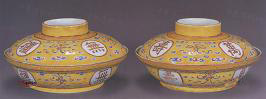 清光绪 景德镇黄地“万寿无疆”碗(一对)