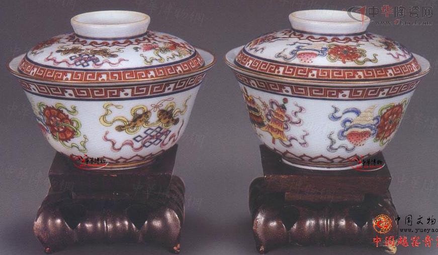 清光绪 景德镇窑粉彩八宝纹盖盅(一对)
