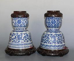 清乾隆 景德镇青花缠枝莲暗八宝纹花觚