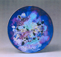 在釉色上,采用新的配料,烧制出以前没有的颜色,使钧瓷的色彩更加斑斓。有一件极品挂盘,上面呈现出七八种色彩,盘折曲绕,互相映衬,精美至极。