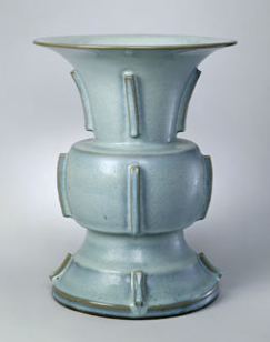 钧窑月白釉出戟尊,宋,高32.6cm,口径26cm,足径21cm。
