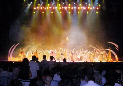 据了解,“火舞阳光·太阳神鸟原生态音乐剧”导演是出任2008奥运会总副导演的陈维亚,该剧的成功创作离不开他的艺术造诣;整场音乐剧的音乐总创作是连续十年担任中央电视台春节文艺晚会音乐总监的卞留念,此次音乐剧的所有歌曲均出于他的灵感;灯光的总设计出自素有中国舞台第一灯、2008年奥运会灯光总设计沙晓岚的光彩手笔。加上演出单位“成都艺术剧院”的演出团队,整台音乐剧前后动用300名演职人员与500套炫丽服饰,他们扮演不同的角色演绎一场精彩绝伦的音乐会,如此高端的企业文化晚会在中国建陶行业可谓是盛况空前。