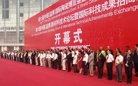 一年一度的陶瓷博览会是展示淄博陶瓷产品形象,开拓市场、联络国际客商的重要纽带,也是提升陶瓷产业,传承陶瓷历史文化的一次盛会。9月6,第七届中国(淄博)国际陶瓷博览会暨世界陶瓷采购大会·第六届中国(淄博)新材料技术论坛暨国际科技成果招商洽谈会在淄博国际会展中心隆重举行。全国政协副主席李蒙、中国工程院副院长沈国舫、山东省副省长才利民、省政协副主席齐乃贵;市委书记、市人大常委会主任刘慧晏、市委副书记、市长周清利、市人大常委会党组书记、副主任常志钧、市委副书记侯法生、市委特邀顾问王学刚、王行宏;市领导陈家金、韩世幸、王顶岐、周连华、宋军继、赵启全、郭利民、陈勇、魏艳菊出席开幕式。姚福生等15位中国工程院院士,田波、都有为等中国科学院院士,几内亚、比利时、波黑、孟加拉国等国家的驻华大使和使节;美国、英国、澳大利亚、韩国、日本、印度、俄罗斯等20多个国家和地区的外宾、外商代表以及国内有关省市的客商等在主席台就位。市质监局领导及直属单位负责人等20余人应邀参加开幕式。全国政协副主席李蒙宣布陶博会开幕,市人大常委会主任、市委书记刘慧晏等领导为开幕式剪彩,市委副书记、市长周清利代表市委、市政府致词。开幕式结束后与会领导和嘉宾兴致勃勃地参观了国际工业陶瓷展览会等现场。