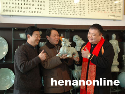 全国人大代表河南省文联副主席河南歌舞学院副院长范军、河南歌舞团团长于根艺到亨通汝瓷参观