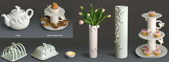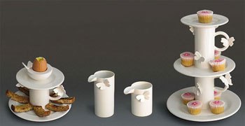 Polly George设计的这套绚美的陶瓷餐具极具浪漫色彩。无论是烤面包架、黄油盘还是蛋糕架,有了Polly George的设计,这些日常生活中平凡得甚至让人感到无趣的东西却变得生动美好起来。Polly George设计的这套蝴蝶系列的餐具的确会给你平凡枯燥的厨房生活增添浪漫的鲜活色彩。
