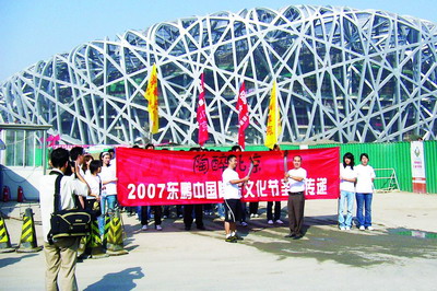 9月8日早8:30,奥运主场馆“鸟巢”人头攒动,108人组成的身着“陶醉中国”统一服装的队伍在此整装待发。新浪网、焦点网等媒体早已在此架起了摄像机、照相机随时准备捕捉精彩镜头,有的媒体已迫不及待地对现场工作人员进行了采访。9:00,奥运冠军阎森走到队伍前列,接过东鹏工作人员从佛山南风古灶取来的火种将火炬点燃。现场响彻“陶醉北京,鹏飞世界”的口号。在阎森的带领下,队伍浩浩荡荡沿着预定传递路线开始传递圣火,经三个分会场传递到十里河店,并在此进行火炬接力。随后队伍喊着口号,高举“陶醉中国”的旗帜,继续朝陶瓷文化节主会场北京闽龙陶瓷总部基地进发。沿途不断有市民加入到圣火传递的队伍中来,与队伍一起高喊口号,齐步进发。