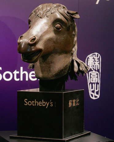 香港苏富比拍卖行9月5日推出自己将于10月10日2007年秋拍中开拍的重点文物——圆明园海晏堂前的铜马首。