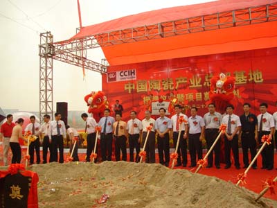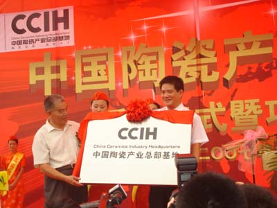 佛山市常务副市长冼瑞伦、禅城区委书记梁毅民等佛山市以及禅城区等领导出席了奠基仪式并讲话,中国建筑卫生陶瓷协会会长丁卫东出席奠基仪式,宣读了中国建筑卫生陶瓷协会发出的《关于同意命名“中国陶瓷产业总部基地”的函》。在随后的授牌仪式上,丁卫东会长向中国陶瓷城代表颁发了“中国陶瓷产业总部基地”牌匾。
