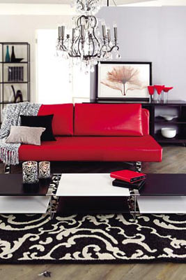 很少人会选择红色作为家居主色彩,的确,抢眼的红色用得不好,将会给人造成巨大的压力,并给人“俗艳”之感,但是,今年秋冬,正红色却成为本季时尚舞台的主打色。在严寒的冬季,巧妙地运用正红色的热烈和热情,不仅可以提高室内的温度,而且可以提升家居的情调。 抢眼的红色不适宜做大面积的底色,但非常适宜做点缀,宽敞的客厅里,可以摆放一套红色的布艺沙发;舒适的卧室,添一盏红色的台灯;温馨的餐桌上,放两个红色的烛台;单调的墙面上,挂一款红色钟表或者小画;甚至居室的角落,都可以点缀一个红色的垃圾桶。