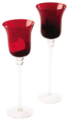 玻璃材质制成的红色高脚烛杯,充满了浪漫气息。飘雪的冬季,二人晚餐桌上,摆两盏透着温润红光的高脚烛杯,一切尽在不言中。