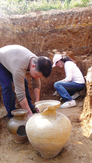 昨天,在瓯海区梧田街道南堡村村后的小山坡上,几名考古文物人员和民工正在紧张地做最后的整理。根据从这里出土的7件瓷器和墓结构,温州市考古研究所专家认定这是一座距今有1千多年的唐代平民石室墓。据悉,这是我市首次发现的唐代石室墓。