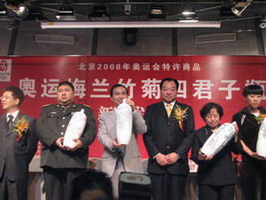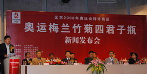 2007年10月13日,在北京奥运会倒计时300天之际,由北京奥组委,湖南省株州市委市政府共同主办的“2008年奥运会特许商品----奥运梅兰竹菊四君子瓶新闻发布会”在首都博物馆举行。毛新宇博士,北京奥组委市场开发部副部长王禹,株州市人民政府市长陈君文,中国第一位奥运冠军许海峰,奥运冠军钱红,中国陶瓷工业协会秘书长傅维杰,北京收藏家协会常务副会长王钧,醴陵市市委书记谢清纯,湖南省韶山管理局副局长胡德昌,毛泽东同志纪念馆馆长夏佑新,现场还有奥运特许零售商代表、首都北京各新闻媒体的记者,以及广大收藏爱好者和社会各界人士共同出席了新闻发布会。