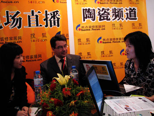 【主持人】:各位网友大家好,今天很高兴邀请到密塞尔有限责任公司营运总监马库斯.克雷玛先生做客搜狐焦点陶瓷频道并接受我们的采访,请您跟各位网友打声招呼。