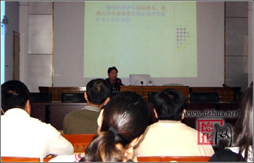 【德化网 讯】 为了使全院师生强化评估知识的掌握和理解,了解评估指标体系的深刻内涵,为学院评估工作的开展提供必要的理论和方法指导,学院特邀评估专家陈彦昀副教授于10月23日举办“在高职高专评估工作中,我们应该做什么”的评估知识专题讲座,从而拉开了学院“我为评估做贡献,我为陶院添光彩”系列宣传教育活动的序幕。