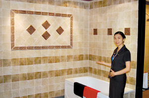 陶瓷是家装最重要的基础建材之一,大部分业主在大厅地板、厨房与卫浴间都喜欢选择成套的陶瓷产品,可以说是陶瓷建材的选择占据了家装的三分一比重。大良的金意陶专卖店就非常喜欢引进最新的产品,如店长邝意平所说:“陶瓷设计不只是防水、防热的功能性选择,而是能体现装修整体艺术与业主个人生活品位的建材产品,所以引进新材料是非常必需的。”