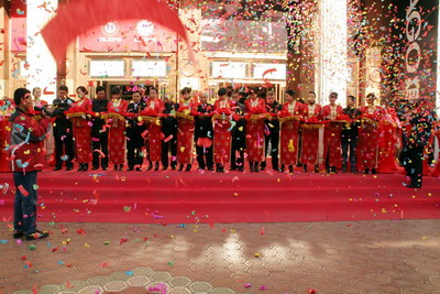 在开业仪式中,主会场正面矗起的一座20米红门、一对红灯笼柱、侧面矗起的二座18米彩虹门、二对灯笼柱以及三座高大鲜艳的彩虹门宛如一条绚丽的彩虹,宏伟壮观。此外,在会场周围停放10台加长林肯车队,气势磅礴、壮丽巍然,车体上方挂有条幅,车体颜色一致就像路标,不但为参加典礼的领导与来宾指引方向,而且让活动整体有序。整个开业仪式丰富、生动、多彩,现场在喷射出五彩缤纷的彩片而产生从天而降的完美画面下,独树一具的开业气氛吸引了近千人前来观摩及采购,同时,也以隆重热烈、格调高雅、气势非凡的开业仪式展现益高公司的雄厚实力,提升了EAGO(益高)在哈尔滨市及黑龙江省的品牌知名度,并快速占领市场打开全方位的销售局面,将“中华第一店”做到名副其实,为黑龙江经济腾飞做出更大贡献打下了良好的基础。