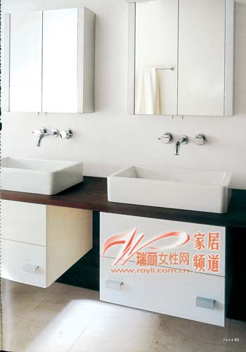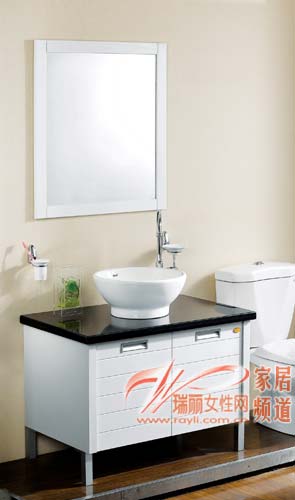 木质的浴室柜吸水容易变形,所以它对周围环境有非常苛刻的要求,而普通家庭的浴室一般只有几平方米的空间,不容易做到干湿分区。在选购浴室柜时,可以采用防火板、耐磨板,高分子聚合物等复合型板材作为柜面材料,它们不但具有很好的防潮性,还能模拟出实木的颜色。
