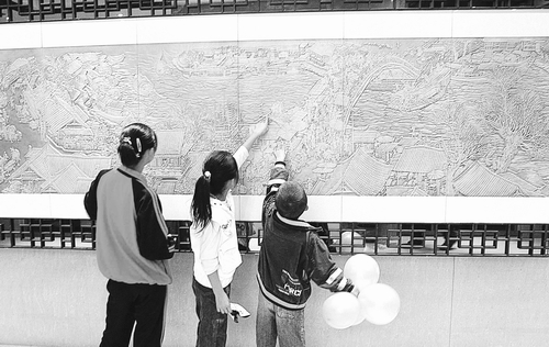 日前,省城一家商场展出了一幅陶瓷版《清明上河图》。该图采用浅浮雕技法,再现了《清明上河图》中的场景。(卓也)