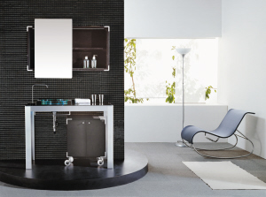 一提到浴室家具,人们总是联想到宽大的卫浴用品和古典的木质梳妆镜,其实不然,越来越强调实用性的浴室柜尺寸并不大,而且完全可以将浴室中常用的琐碎之物——洗面乳、牙缸、剃须刀等巧妙地隐藏其中,绝对是小浴室中保持整洁的超强收纳能手。