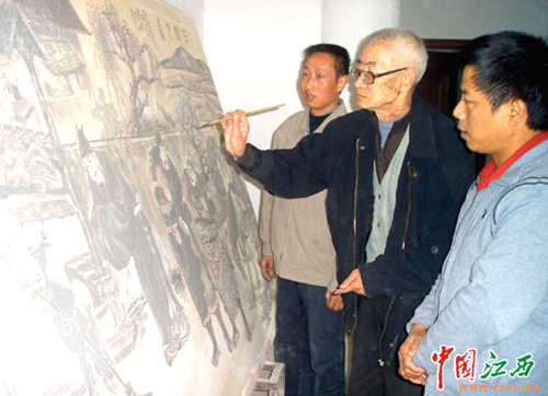 为了绘制这件作品,老人天天从远在新桥的家中奔波于老鸦滩作坊,每日站立坯板前八九个小时绘画,足足画了一个多月,才在弟子汪春麟和刘新初的协助下,完成这幅超大型青花釉里红人物画瓷板佳作。这不仅是陶瓷工艺绘制烧成的一大进步,同时也显示了景德镇陶瓷艺术家的雄厚实力与永远创新精神。