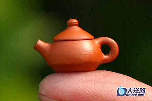 仅重1.4克的世界上最小的茶壶。(大洋网-广州日报 王燕)