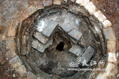 昌江河畔一处挖掘现场,发现直径逾100厘米的圆形辘轳车坑,坑以青砖、石块砌成,中心有一个安置辘轳车足的圆形小洞,是景德镇地区目前保存最为完好的明代晚期陶车坑。