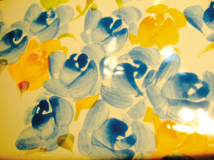 各种鲜艳、栩栩如生的花卉被大胆地运用到卫浴设计中,设计师创造性地将这些来自自然中最具感染力的时尚元素在产品上艺术地再现,并赋予其特定的文化内涵,使其不再是一件冷冰的工业产品,而是带有感情的。在设计工作坊,记者看到一个个造型漂亮的洁具坯体摆放在支架上,画师正站在坯体前,手握画笔在坯体周围淡描浓抹,每一笔都是仔细斟酌,然后沾上或重或轻的颜料,一笔落下,力有千钧,恰到好处,于是一朵朵热情的玫瑰、艳丽的桃花、含笑的樱花……跃然坯体上,绽放出美丽。