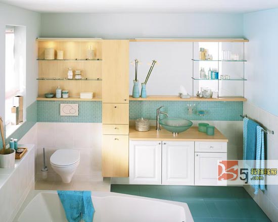 蓝色是比较中性的颜色,在夏天让人感觉清凉,在秋冬也不会让人感觉冰冷,在浴室里适当的添加蓝色元素,会给人带来身心自由的快乐感觉。