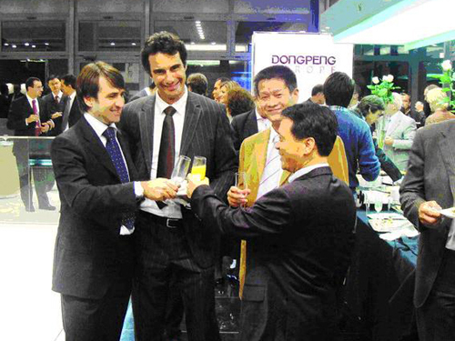 何新明 刘韧 与欧洲东鹏首席律师.股东Pole和东鹏国外产品设计师举杯共贺