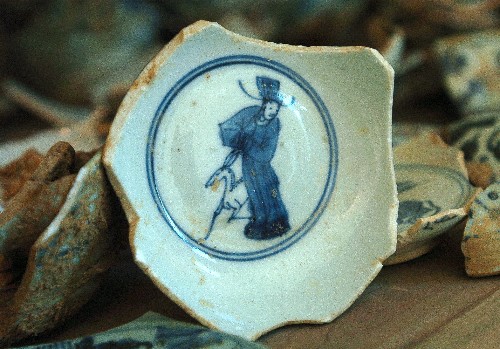 这是出土的青花瓷残片(11月27日摄)。新华社记者 章武 摄