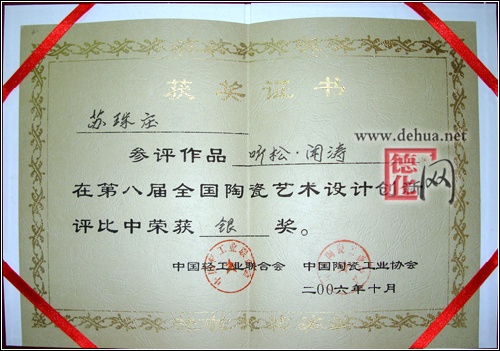 全国第八届陶瓷艺术设计大奖赛银奖《听松·闻涛》