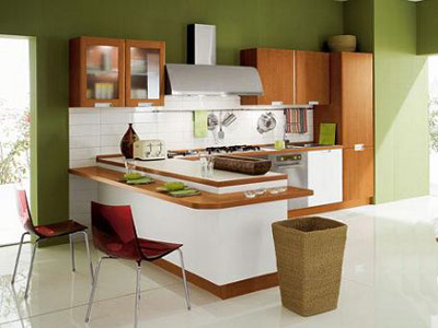 绿色的墙面,加之棕色和白色的橱柜色彩,让你对自然更亲近、更亲近、、、