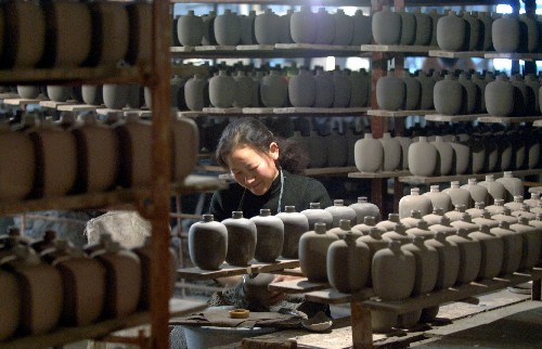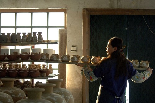 11月28日,在河北省峰峰矿区彭城古镇一个磁州窑作坊,工人正在搬运磁州窑制品。磁州窑是中国著名的民间陶瓷窑系,因其主要窑场位于古代磁州,即今天的河北峰峰矿区彭城、磁县一带而得名。磁州窑瓷器保留了大量古代民间绘画、书法及反映民俗民风的实物资料,形成了质朴、洒脱、明快、豪放的艺术风格,富有浓郁的民间色彩和鲜明的民族特色。 目前,河北峰峰矿区彭城古镇仍有40多家利用古作坊和家庭居房开设的民间陶艺作坊,一批陶瓷艺人和民间工艺美术师仍在传承着古老的磁州窑制作工艺。但磁州窑烧制技艺也面临着老艺人退休、传统生产方式和制作观念改变、生产资金缺乏、传统手工工艺失传的危险,亟待抢救和保护。 新华社记者 巩志宏 摄