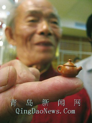 11月25日,在广州举行的2007中国国际茶业博览会上,广东著名陶瓷艺术家吴瑞深老先生展示他制作的重量仅1.4克的潮州手拉朱泥壶。