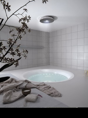 卫浴精品占据了其中十个展馆,舒洁帝的展位是其中一大亮点,参观者把舒洁帝(Zucchetti)三百平方米的展位挤得水泄不通;展厅里不时地传出淙淙的流水声,那是舒洁帝新推出的新品WOSH和KOS系列;大型吊顶淋浴花洒,有圆形的、方形的、带灯的、瀑布流水式的、大至半米直径的、小至比巴掌般大的……一起奏出水的交响乐。承接着的流水是KOS造型独特的浴缸,浴缸起动了的气泡功能和变幻的灯光,就象观众雷动的掌声和舞台上的灯光,为这个展位平添了不少活跃的气氛。
