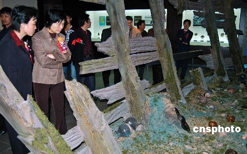 十二月五日,福建泉州古代外销陶瓷博物馆在晋江磁灶镇钱坡金交椅山窑址处落成开馆。该馆工程建设投入一千多万元,展厅面积一千一百二十五平方米。磁灶窑有一千五百多年的生产历史,在中国陶瓷史上占有一席之地,是中国重点文物保护单位。由晋江市政府负责金交椅山古窑址的考古发掘、窑址保护、陈列展示和环境整治等工作。由此确定建设泉州古代外销陶瓷博物馆作为陈列展示场所,与古窑址相辉映。中新社发 傅丹丹 摄