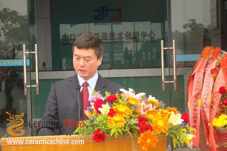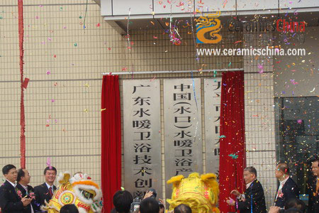 仪式由水口镇镇长许永辉主持。开平市副市长陈靖,水口水暖卫浴行业商会会长、广东华艺卫浴实业有限公司董事长冯松展,广东省科技厅发展计划处处长姚化荣,中国建筑卫生陶瓷协会秘书长缪斌,开平市市长吴平超等领导先后在仪式上致词。