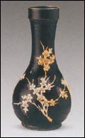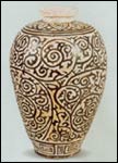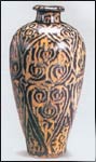 为月光底下的梅树、竹枝、飞蝶或风雪中的芦花,有含蓄的风味和浓厚的国画意境,开创了釉上彩绘的先河。在文字装饰上,有压印、彩书"吉""记"、"福"、"慧"、"太平"、"粉合十分"、"尹家个"、"本觉"、"舒家记"或剪纸"金玉满堂"、"长命富贵"和"福寿康宁"等,表达了民间习俗和向往美好康乐的愿望。黑釉剔花填釉折枝梅装饰,迎雪盛开,别具雅趣。简练的刀法,剔画得形神兼备。